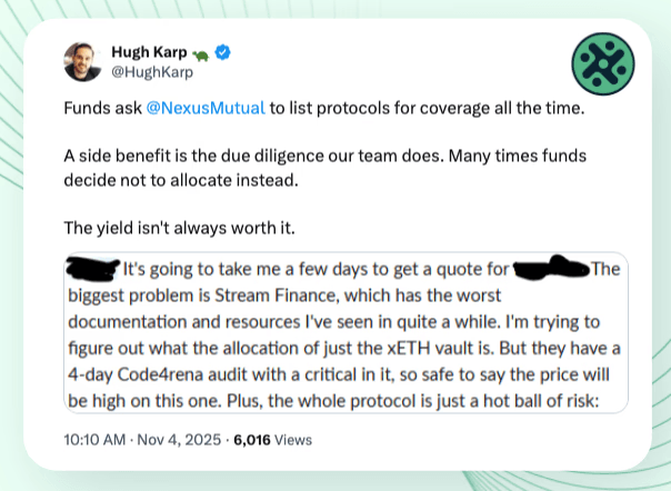 Teams publish post-mortems, we hope better measures are put in place across the industry based on these lessons learned, and then we move on. Until the next failure resets the discussion. At Nexus Mutual, we believe that an expertise in DeFi risk requires both trusted networks and technical capability.